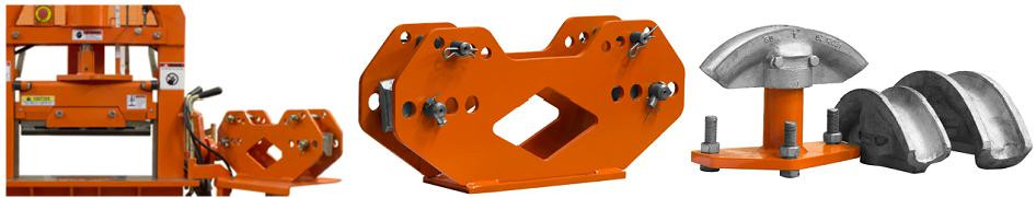 Узел гибки круглой трубы продавливает заготовки при помощи гидравлического двухходового цилиндра с тремя сменными рабочими опорами. Помимо трёх рабочих опор станок имеет две горизонтальные опоры, устанавливаемые в отверстия для регулировки радиуса гиба.